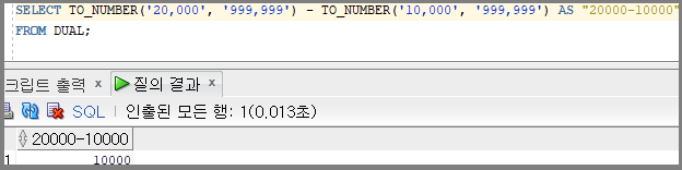 아래의 쿼리는 '20,000'을 '10,000'의 차이를 알아보기 위한 예제입니다.