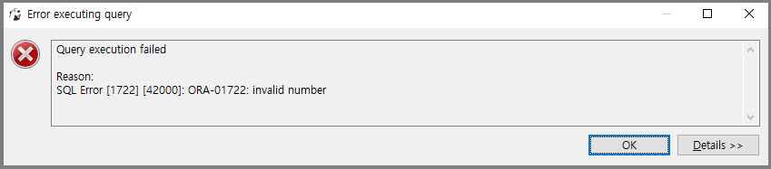 위의 쿼리를 실행하니 ORA-01722: "invalid number" 에러가 발생하였습니다.