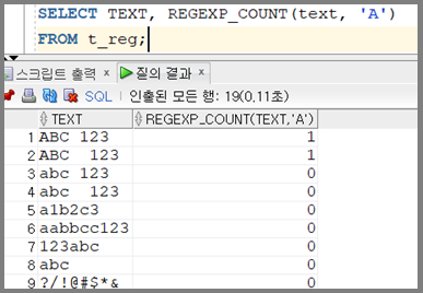 예제들을 통하여 REGEXP_COUNT() 함수를 사용해 보도록 하겠습니다.