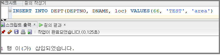 아래의 쿼리는 DEPT 테이블에 값을 추가하는 예제입니다.