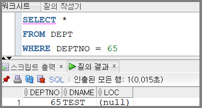에러 없이 DEPT 테이블에 위와 같이 데이터가 추가된 것을 볼 수 있습니다.